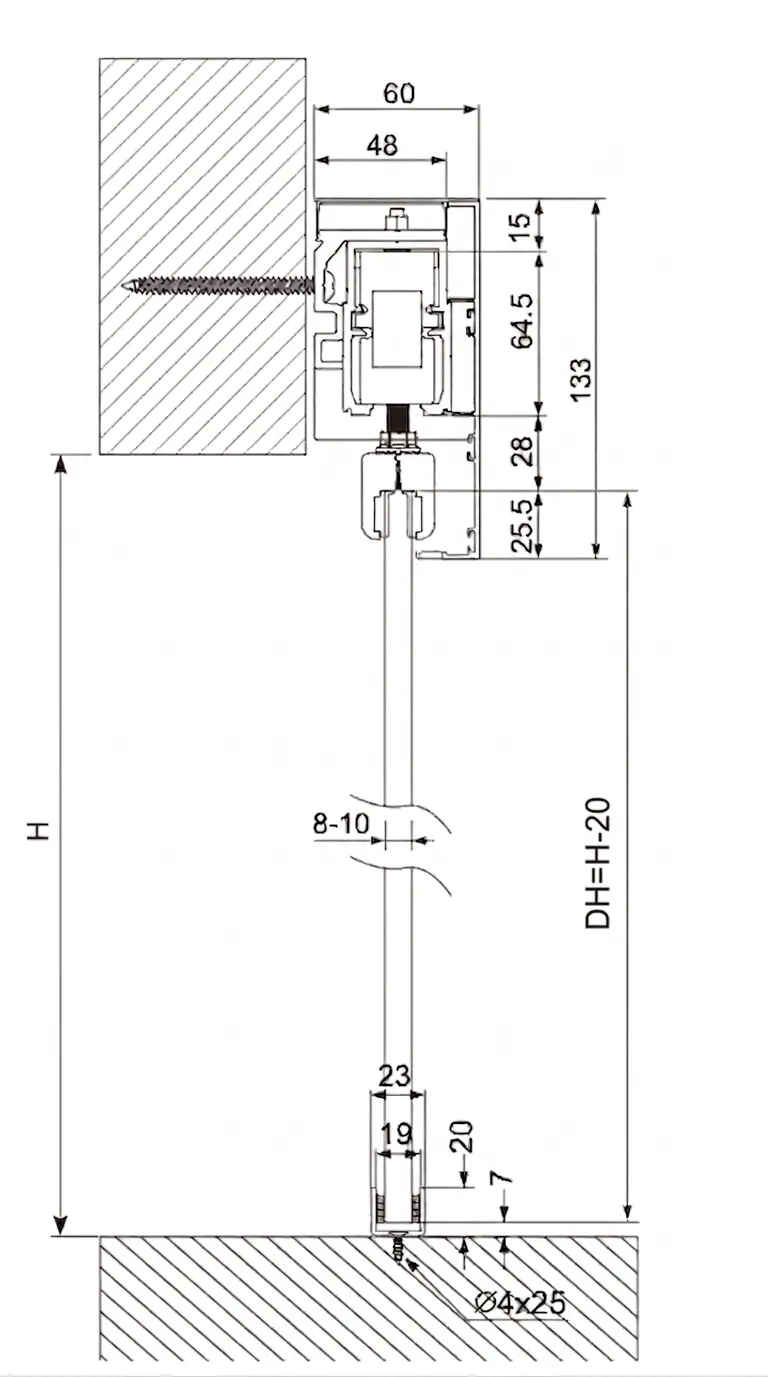 Deze schuifdeur kan eenvoudig worden besteld door de strakke afmetingen van de opening in millimeters op te geven, de maximale afmetingen voor dit product bedragen 1000mm x 2350mm.