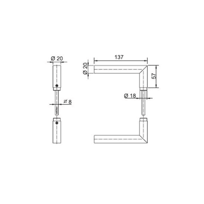Een rechte kruk met een doorsnede van 20mm. Bij deze kruk betreft het een hoekig model.