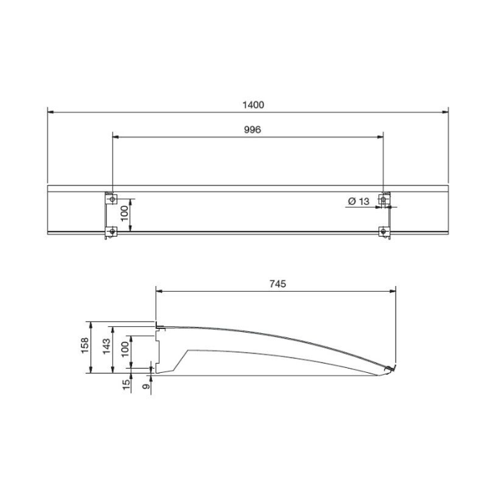 - Vaste afmeting: 750 x 1400mm