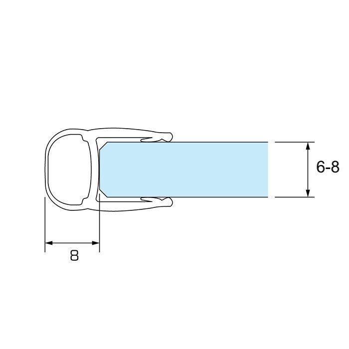 De binnenkant van de strip loopt iets taps toe en klemt hierdoor strak om het glas. Deze strip beschikt aan de binnenkant niet over uitstekende randjes en is hierdoor enkel geschikt voor 6 mm glas of 8mm glas.