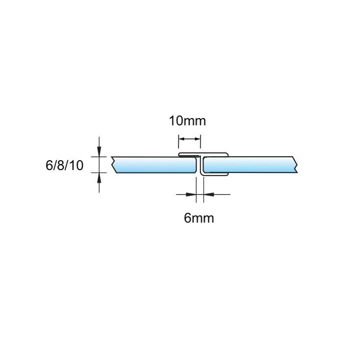 Voorbeeld: Bij gebruik van de strip i.c.m. 6mm schuift het glas tussen de randjes door tegen het einde van de strip en bij 8mm komt het glas tegen de randjes aan.