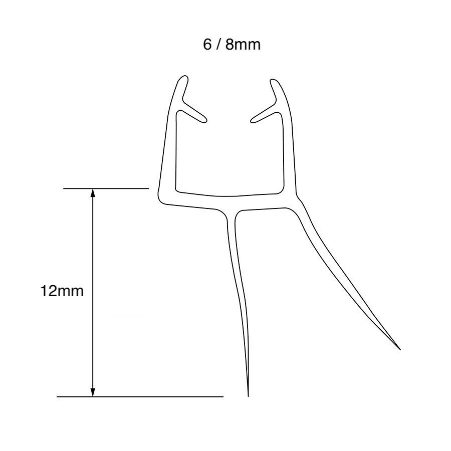 De binnenkant van de strips loopt iets taps toe en klemt hierdoor strak om het glas. Sommige strips zijn geschikt voor 2 glasdiktes. Dit komt omdat aan het einde van de binnenkant 2 kleine uitstekende randjes zitten waar het glas of tussendoor schuift of tegen aan komt. Hierdoor zijn sommige strips geschikt voor 6mm / 8mm en 10mm / 12mm glasdikte en kan soms de benodigde speling per glasdikte verschillen. Sommige strips zijn enkel voor 1 glasdikte geschikt, deze beschikken namelijk niet over de uitstekende randjes.
