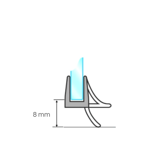 De binnenkant van de strip loopt iets taps toe en klemt hierdoor strak om het glas. Deze strip beschikt aan de binnenkant niet over uitstekende randjes en is hierdoor enkel geschikt voor 6 mm glas of 8mm glas.