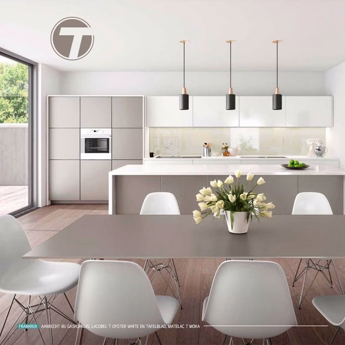 Gekleurd glas van Lacobel-T is leverbaar in verschillende trendy kleuren, zodat er voor ieder interieur wel een geschikte kleur beschikbaar is. Het 6mm dik glas wordt aan 1 zijde gelakt en vervolgens gaat er een beschermlak overheen waardoor het glas volledig ondoorzichtig is. De meeste Lacobel-T kleuren worden geleverd i.c.m. helder glas, de lichte kleuren worden in extra helder glas geleverd.