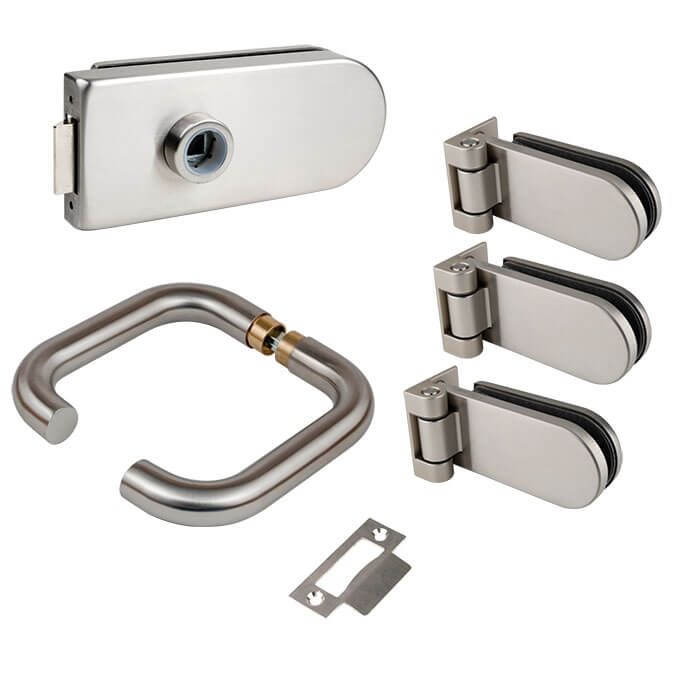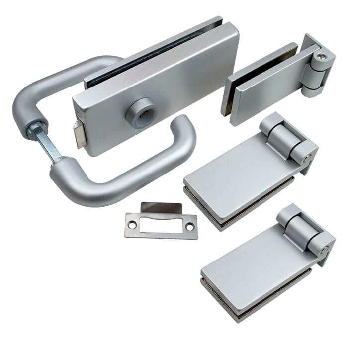 - Deurkruk, loopslot en 3 scharnieren in aluminium of RVS