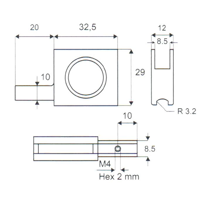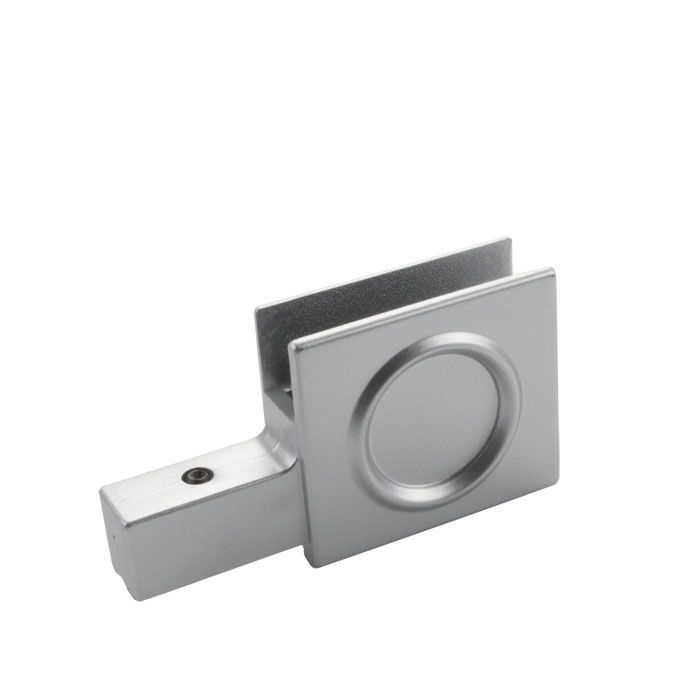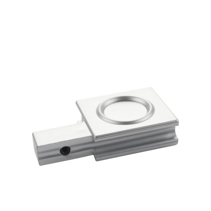 Loopschoen greepje tbv schuifruitsysteem, open eindstuk in aluminium look.