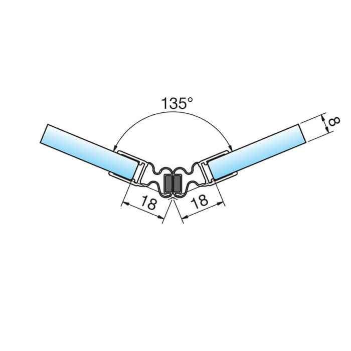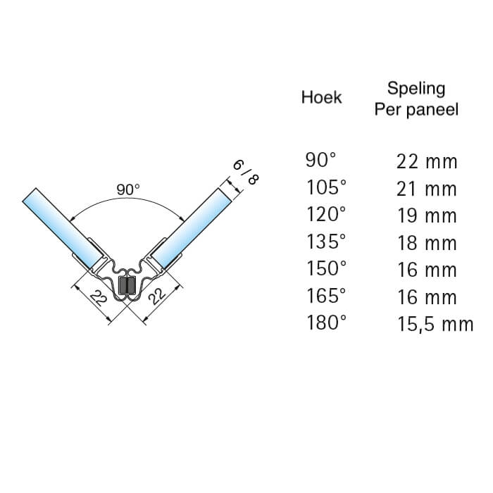 Door de flexibele magneet kunnen de strips perfect in de juiste positie worden gezet. Ideaal als de hoek bijvb. 100graden is. De magneten zijn verstelbaar van 90° - 180°. Let wel op de benodigde speling welke per hoek verschillend is (zie technische tekening)