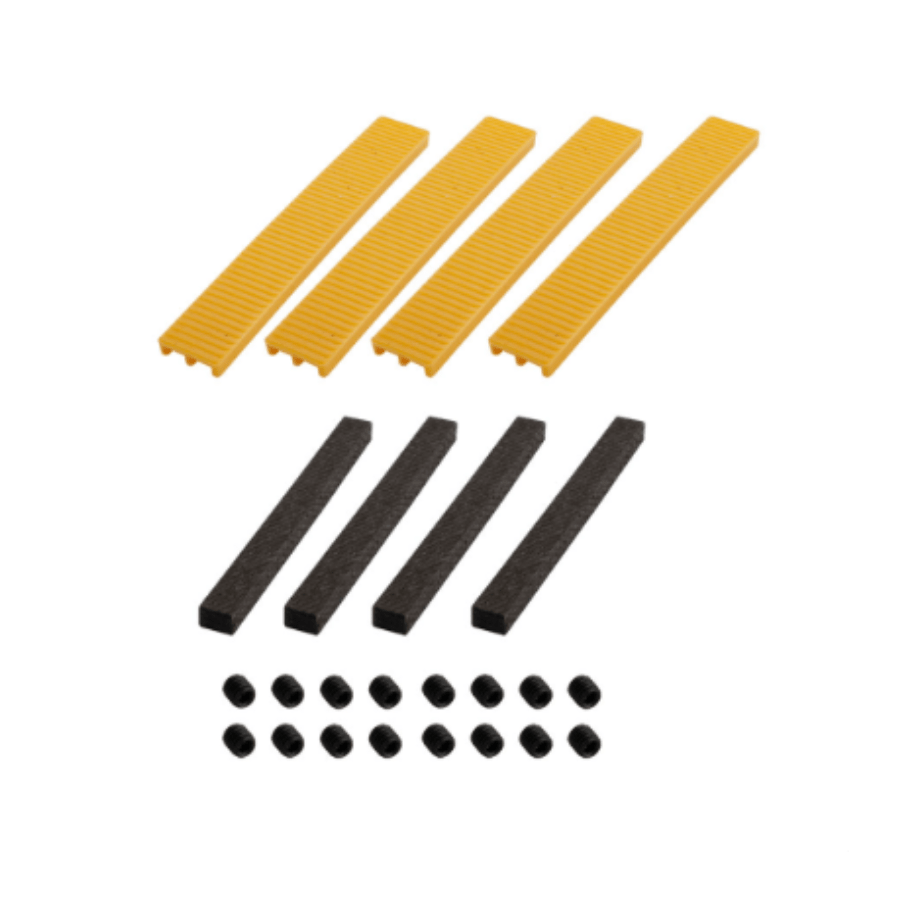 Handige montage set t.b.v. kantoorwanden i.c.m. klikprofielen. De montage set voor klikprofielen heeft 4 stelblokjes van 100x15x4mm en 4 stuks 80x8x6mm en 16 stuks inbusschroeven M6x6.