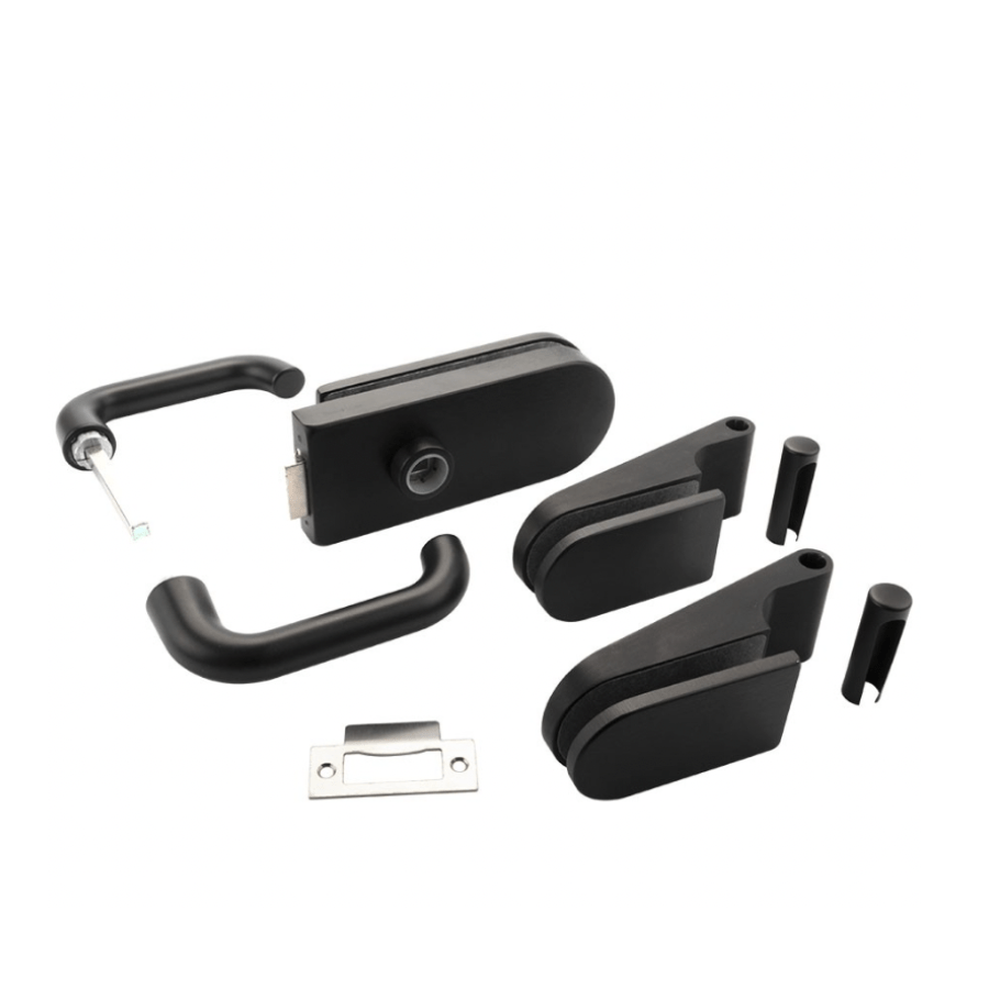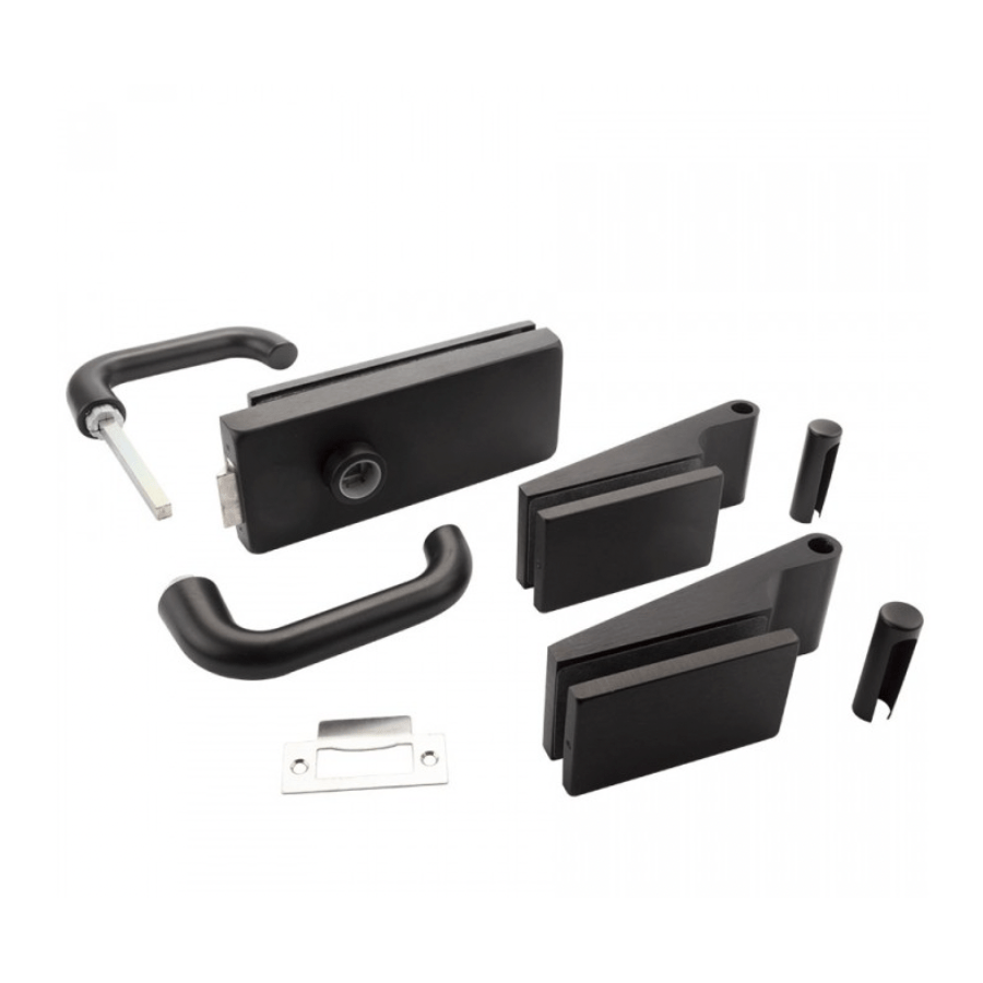 - Deurkruk, loopslot en 2 opdekscharnieren in mat zwart (RAL9005)