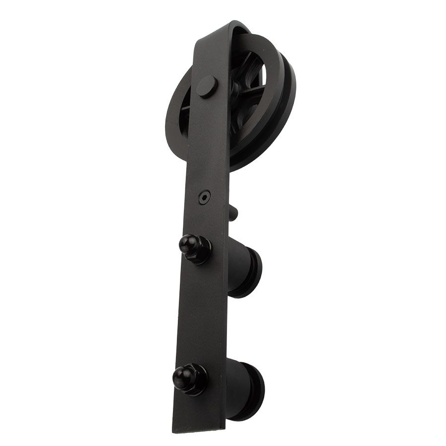 - Compleet schuifsysteem incl. rails, 2 gelagerde hangrollen, vloergeleider, 2 eindstoppen in mat zwart