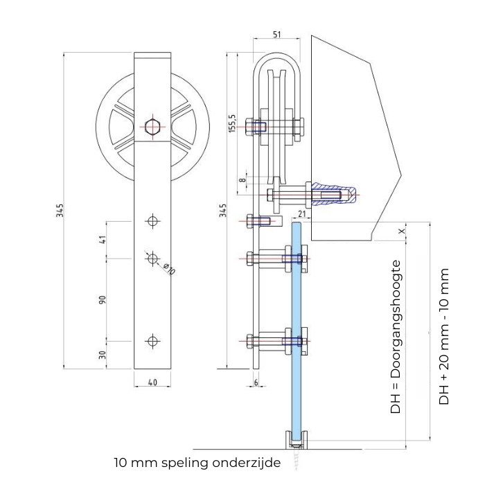 Deze schuifdeur kan eenvoudig worden besteld door de strakke afmetingen van de opening in millimeters op te geven, de maximale afmetingen voor dit product bedragen 1000mm x 2100mm. Wij houden vervolgens rekening met de benodigde speling in de hoogte. In de breedte calculeren wij een overlap van 50mm per zijde t.b.v. tocht en inkijk. Indien u een andere overlap wenst kunt u dit het beste via de mail aanvragen.