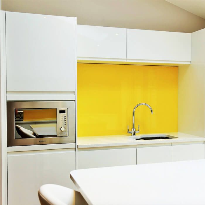 Een bijkomend voordeel van de dichte lak is dat het glas eenvoudig met montagekit tegen de muur van de keuken kan worden geplakt. Dit omdat de kit niet door het glas zichtbaar is. Daarna kan het geheel eenvoudig rondom worden afgekit met een zuur-vrije siliconenkit. Op die manier kan er geen vocht en vuil tussen het glas en de muur komen.