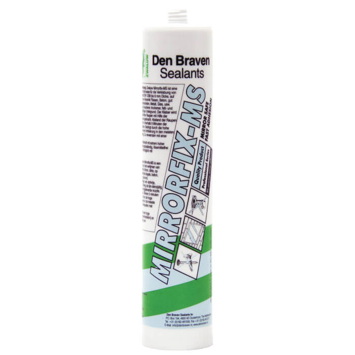 Zwaluw Mirrorfix-MS is een montagekit die speciaal is ontwikkeld voor het verlijmen van spiegels. In deze lijm zitten geen chemische substanties verwerkt die in de spiegel kunnen gaan bijten of die de spiegelende laag aan kunnen tasten.