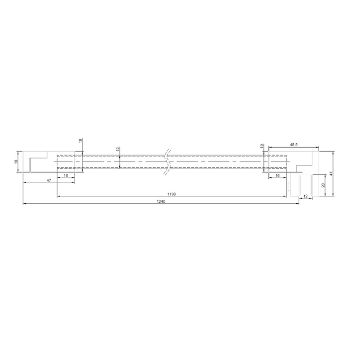 Vierkante horizontale stabilisatiestang voor de douchewand met een lengte van 1200mm. Met draaibare glasbevestiging en muurbevestiging. Verkrijgbaar in mat wit.